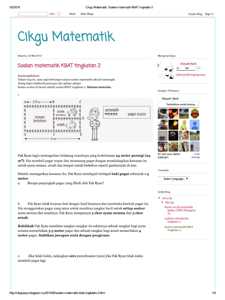Soalan Matematik Tingkatan 2 - Contoh soalan percubaan bahasa melayu pt3 tahun ini.