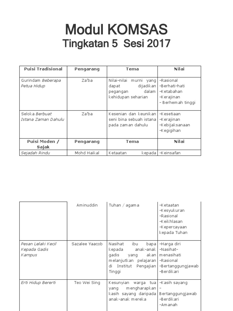 Nota komsas tingkatan 5 ( sejadah rindu ) upload : Nota lengkap novel tirani komsas tingkatan 5|adakah anda calon yang bakal menduduki peperiksaan spm 2018? Pantun dua kerat (nasihat) antologi kuingin berterima kasih komsas tingkatan 1. Rangkap 1 peringatan kepada pembaca sekiranya kurang. Lereng bukit itu terhakis dan runtuh menimpa sebuah banglo.